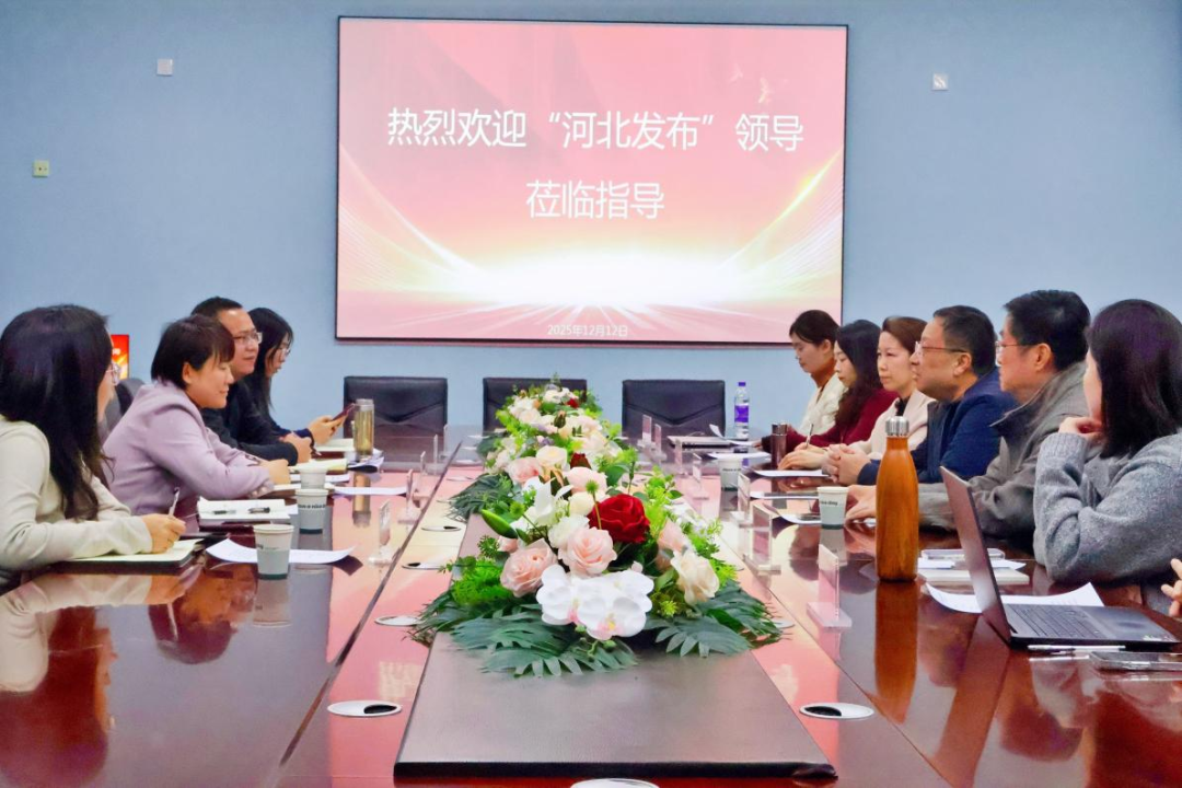 为深化产教融合,搭建优质实践育人平台,12月12日,河北省人民政府新闻办公室省级政务新媒体平台“河北发布”运营团队来到我校新闻传播学院,就产教融合合作项目开展深度交流探讨。“河北发布”运营中心主任刘燕、副主任李宝发及相关负责人,河北传媒学院产教中心主任杨子文、新闻传播学院院长张金桐及网络与新媒体专业、广播电视学专业和播音与主持艺术专业相关教研室主任参加活动。